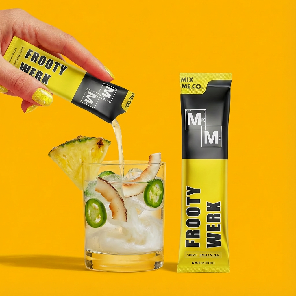 Add 1 Mix Me Co. Stick Pack - Choose a Mix Me Co. flavor and pour into the spirit. No measuring, no muddling, no extra ingredients.